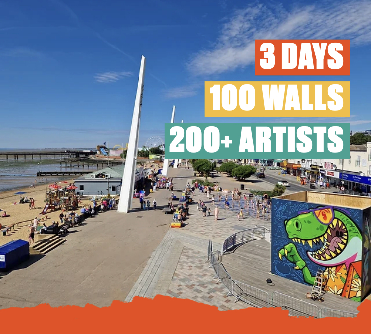 Each year local, national and international street artists transform a number of permanent and temporary walls around the City Centre and Seafront. From the sides of buildings, to temporary walls, no surface is safe and this year, Southend City Jam is heading out to sea with a new wall on the pier!