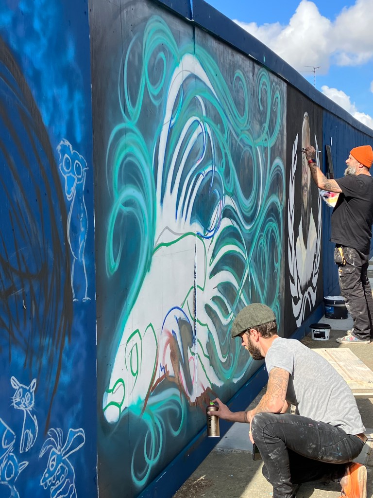 The EastQuarter Street Gallery witnessed dynamic transformations with 10 street artists creating live works at the junction of Surbiton Road and Southchurch Road, complementing existing installations by Dan Kitchener with a fresh display of vibrant art including a mural of local fundraising hero Lee Clark who’s surpassed a milestone £300k raised for charity this week after successfully climbing Mount Kilimanjaro in his latest fundraiser.