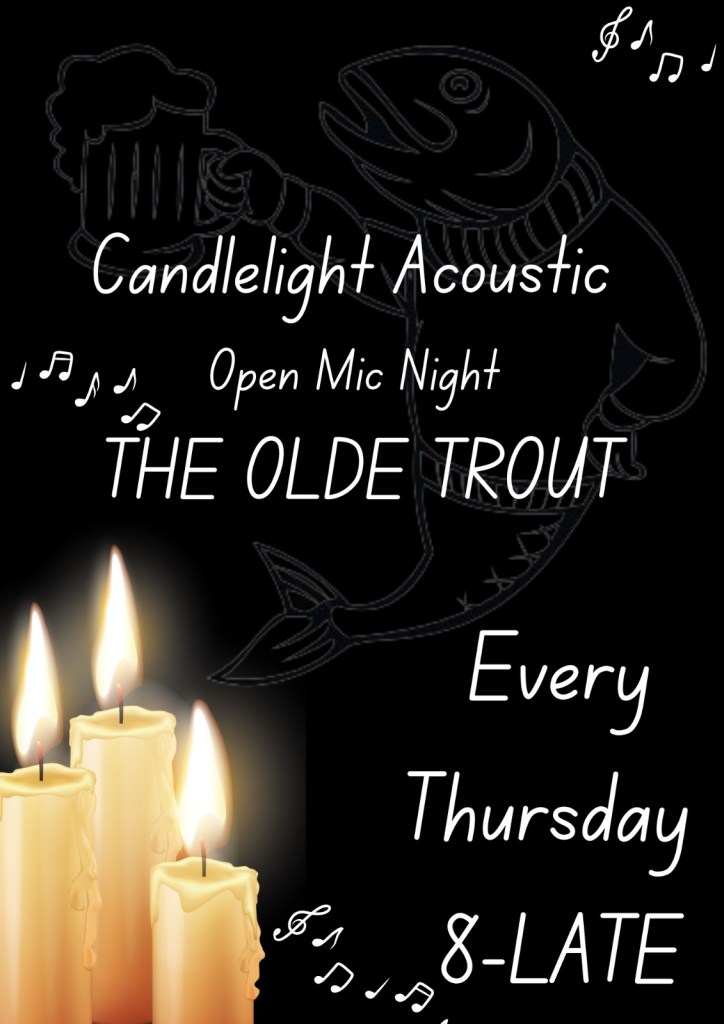 In addition to the open mic tour, you can now perform at and enjoy a Candlelight Acoustic Night every Thursday at The Olde Trout Tavern in Southend from 8pm.