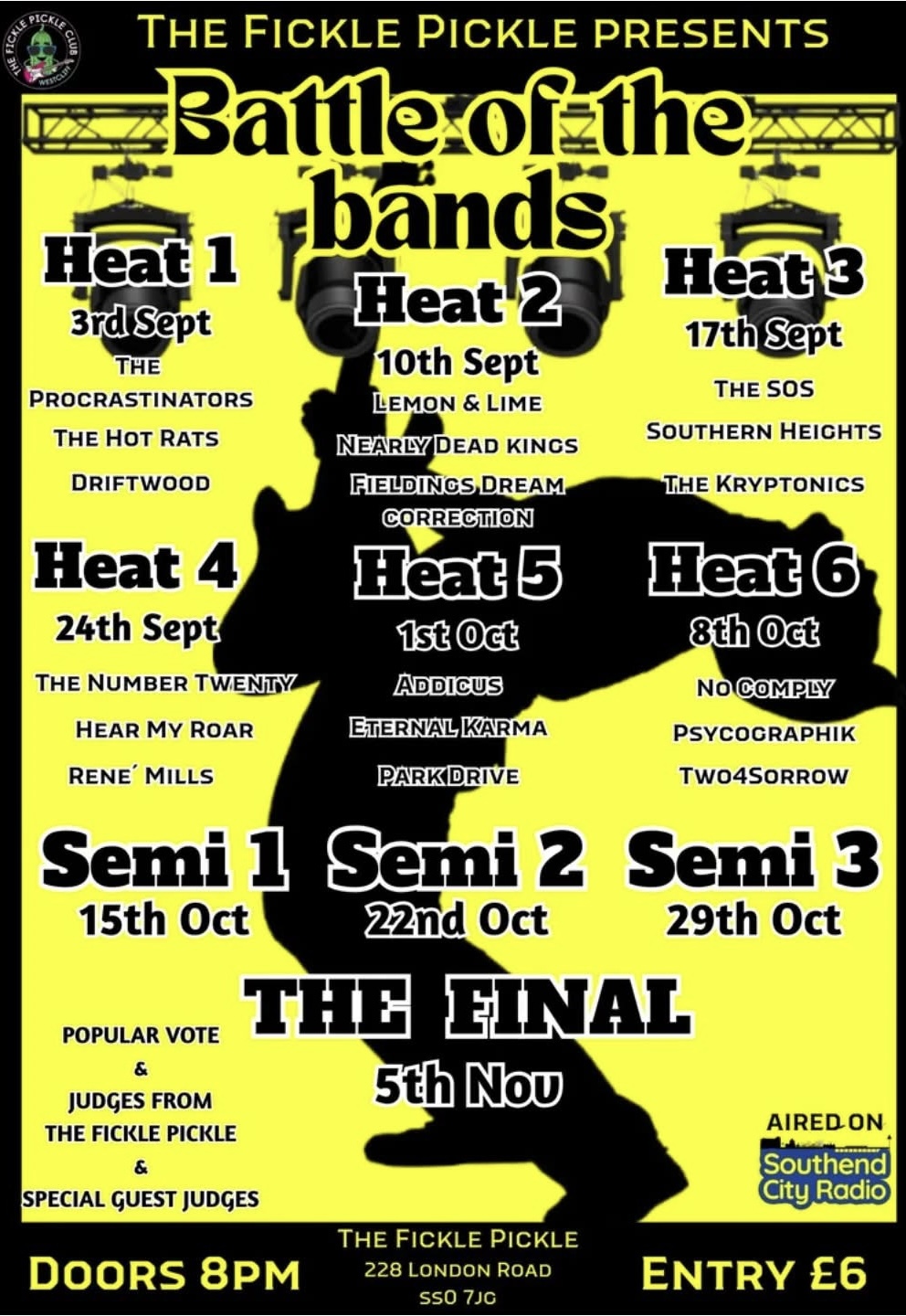 The Fickle Pickle Club is a local gem drenched in musical history. Recorded on the very stage where once stood David Bowie, Status Quo, Thin Lizzy and loads more musical heroes, this special edition of City Radio LIVE features the Fickle Pickle’s Battle Of The Bands.
